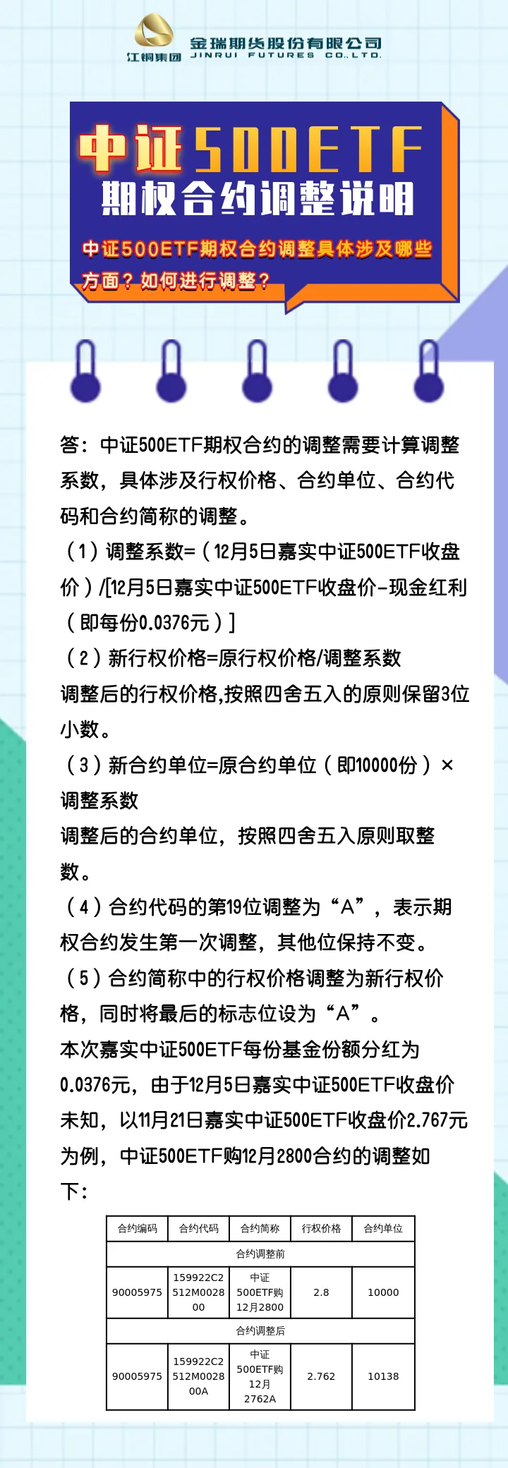 中证500ETF期权合约调整具体涉及哪些方面?如何进行调整?