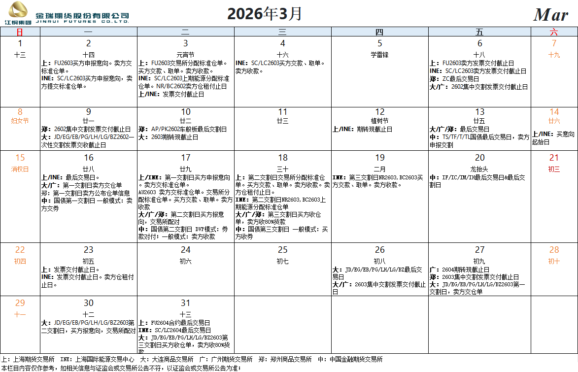 交割日历(2026年3月)