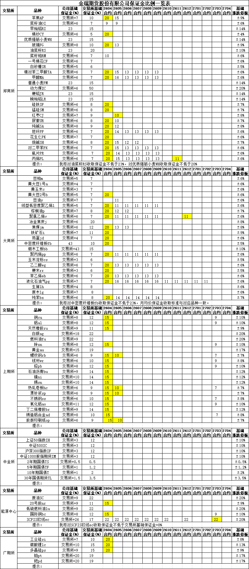 保证金比例提示2026-04-01