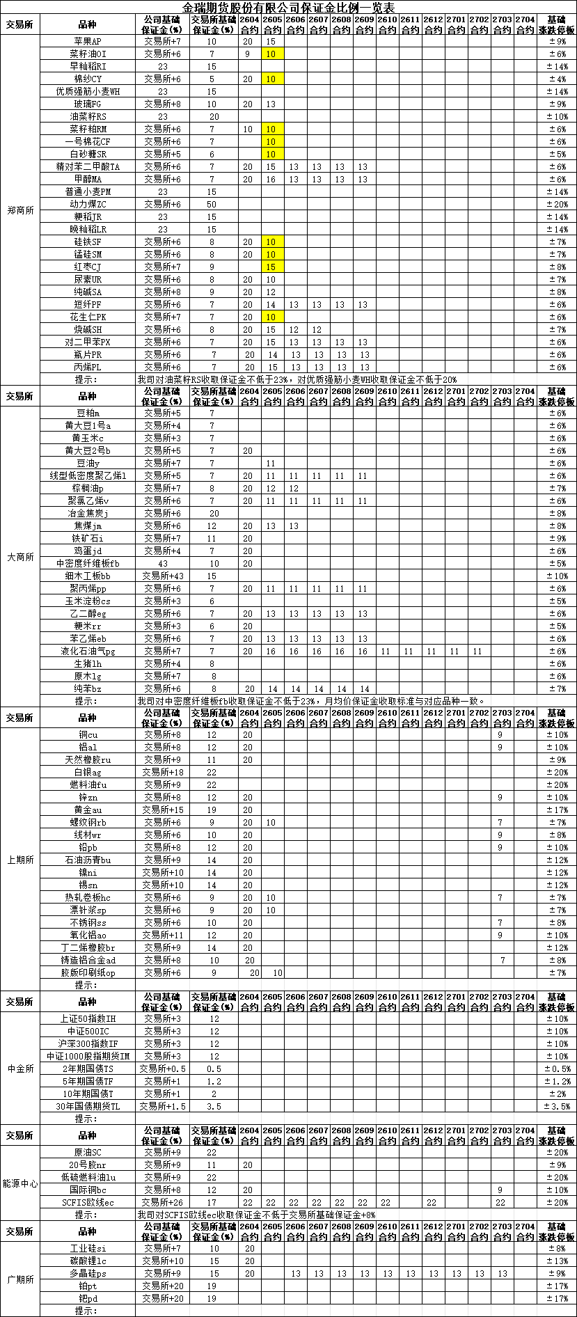 保证金比例提示2026-04-16